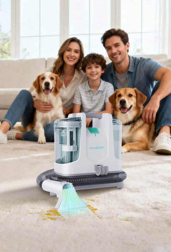 Lightweight and easy to carry, the HAUSHOF Carpet Spot Cleaner helps you tackle muddy paw prints, unexpected spills, and stubborn stains with ease. Spray, scrub, and lift away dirt on carpets, stairs, furniture, and car seats—bringing a fresh, spotless clean to every corner of your home.