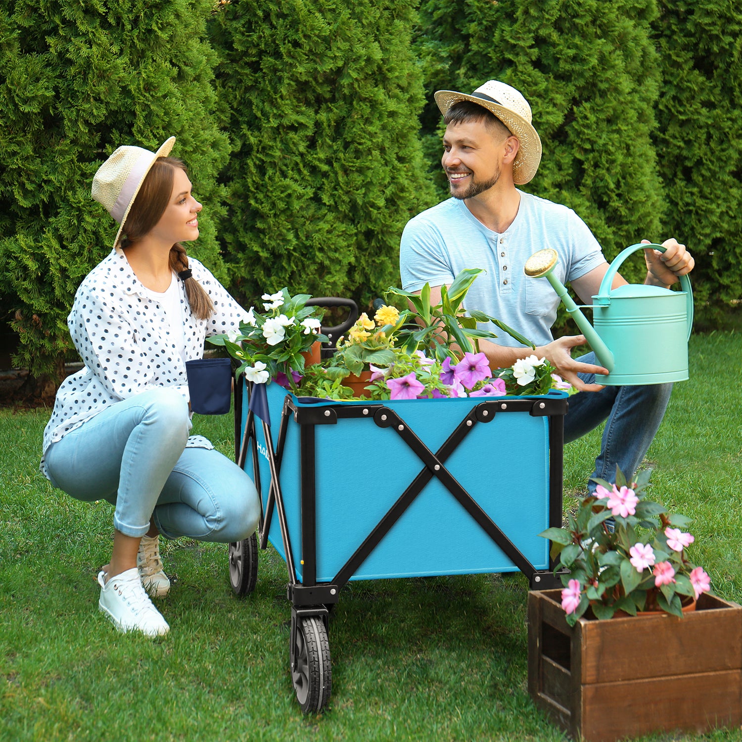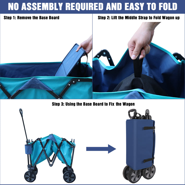• 【Collapsible Design】No assembly required, easy to operate and transport. This collapsible folding outdoor wagon cart has an internal pull rope design, it can be folded into a mini size that you can carry in one hand, which is suitable for putting it in the garage and car boot. Dimensions unfolded: 39-3/4 inch * 19-11/16 inch * 29-1/2 inch; Dimensions folded: 29-1/2 inch * 8 inch * 8 inch.
