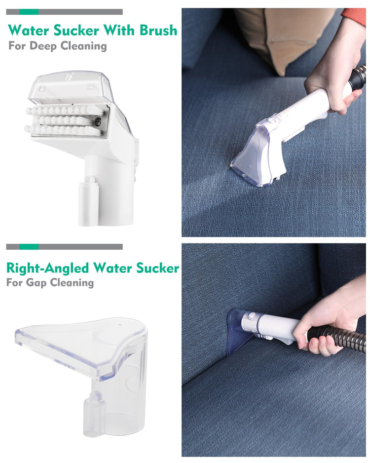 • Lightweight and Compact Design - Weighing only 7.5 lbs, this spot cleaner is easily portable. The ergonomic top handle makes it easy for you to carry it around the living room, bedroom, up the stairs, and to your car as well. Its compact size makes it easy to store anywhere.Long Reach and Versatile Tools - Easily reach spots and stains on carpet, stains, and more with the 4ft hose and 10ft power cord. You've got the tools for every mess, the water sucker with brush combines brush and suction for deep cleaning, and the extra right-angled water sucker can clean cracks and hard-to-reach areas.