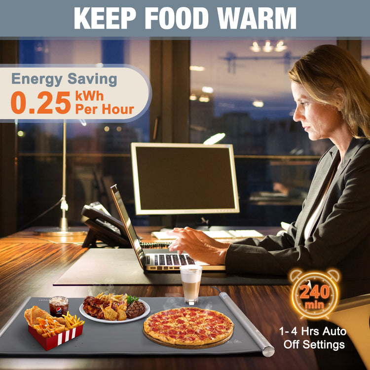 - The HAUSHOF electric warming mat is designed with energy efficiency in mind. Despite its powerful heating capabilities, it consumes only 0.25 kWh per hour, ensuring that you can keep your food warm without running up your electricity bill. This makes it an excellent choice for anyone looking to save energy while still enjoying the convenience of keeping meals at the perfect temperature. It's the ideal solution for eco-conscious consumers who value both sustainability and efficiency